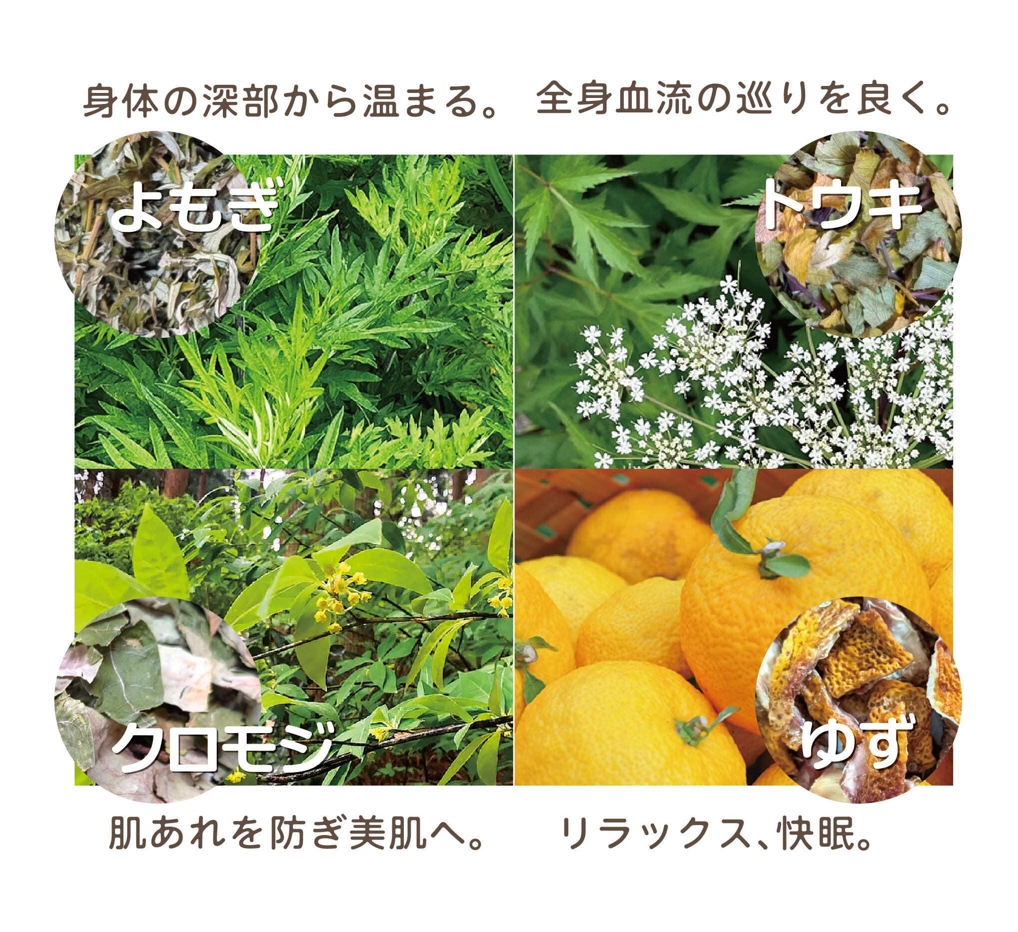 原材料/乾燥よもぎ葉、乾燥当帰葉、乾燥クロモジ枝・葉、乾燥ゆず皮